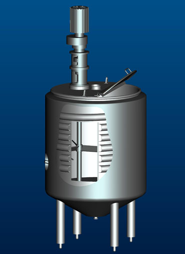 攪拌罐蓋上部配置有傳動(dòng)裝置(電機(jī)或減速器),由傳動(dòng)軸驅(qū)動(dòng)攪拌罐內(nèi)的攪拌器。