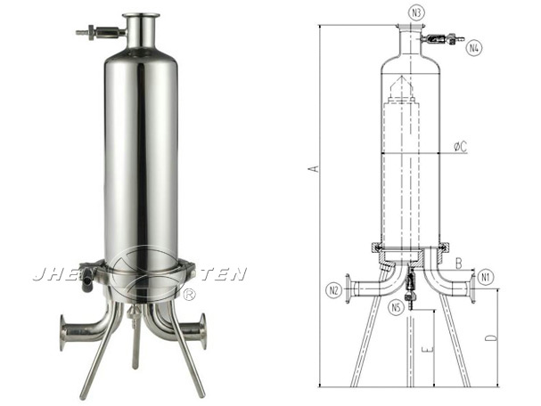 JTGDX Single Fluid Sanitary Filter have good surface treatment and the maximum corrosion-resistant, in order to prevent the bacterial contamination, the unique structure of the sanitary filter housing ensure inside and outside surface have no dead corner and conforms to the requirements of GMP, The filter housing can completely disassemble and washing, easy to operating.