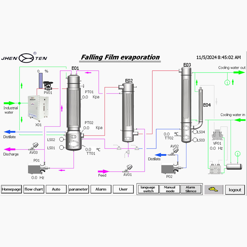 PLC/HMI人機界面:預設多模式蒸發(fā)曲線(連續(xù)/間歇)